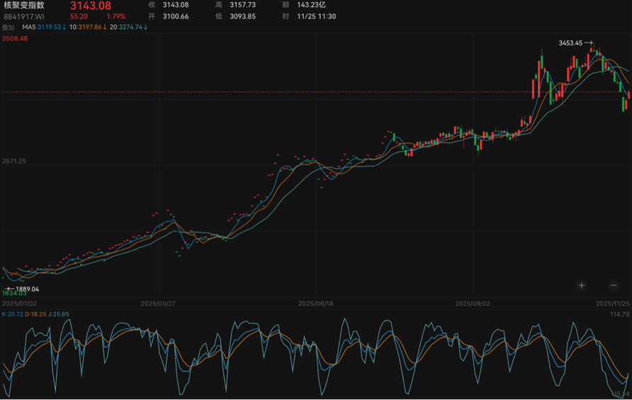 根據核聚變指數,截至2025年11月24日,A股涉及到核聚變概念的上市公司合計42家。