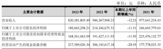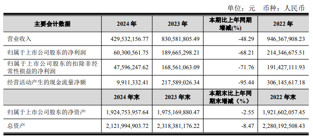 2024年,公司歸屬于上市公司股東的凈利潤為6030.06萬(wàn)元,同比下降68.21%;2023年,公司歸屬于上市公司股東的凈利潤1.90億元,同比下降11.51%;2022年,公司歸屬于上市公司股東的凈利潤2.14億元,同比下降13.08%。