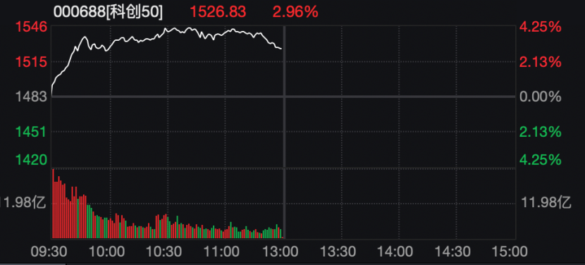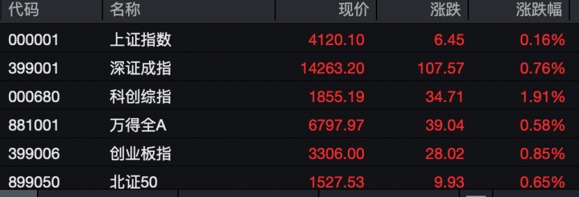 A股市場(chǎng)今天上午整體上行,主要指數(shù)不同程度上漲。創(chuàng)業(yè)板指一度漲超1.5%,科創(chuàng)50指數(shù)一度漲超4%。