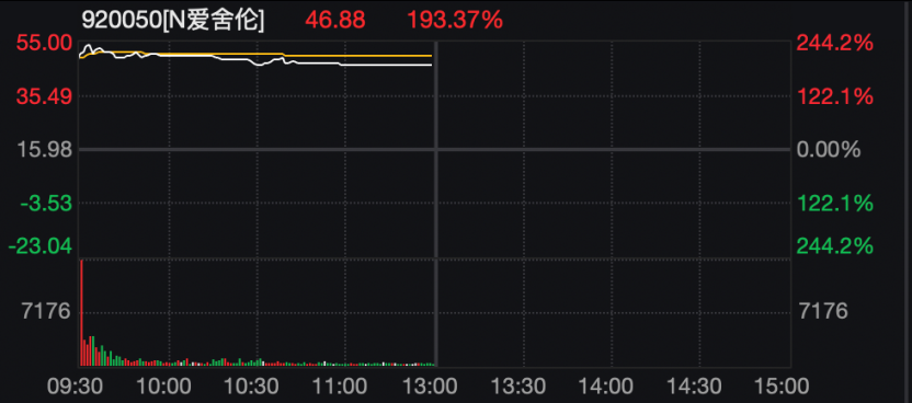 A股市場(chǎng)今天有一只新股上市,為愛舍倫,該股盤中漲幅超過200%。